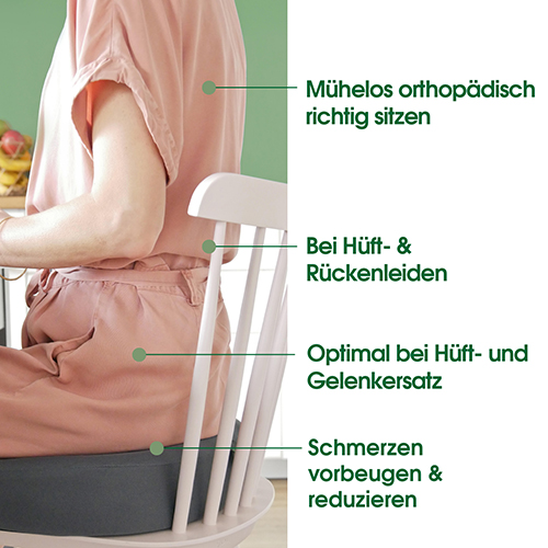 Die Sitzposition ist gewaltig und ich bin sehr begeistert. Kann das Sitzkissen nur empfehlen, auch wenn man keine gesundheitlichen Einschränkungen hat tut es gut. Die Qualität des Kissens ist super und die Beratung von Manfred und Christel einfach herzlich und sehr ehrlich!